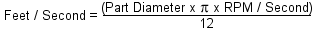 For Inertial Spin Welding, the range of the weld speed is expressed in the circumference speed, which is usually in feet/second. The appropriate inertial rotation can be derived from the following formula, linking the rotational speed with the part diameter:
